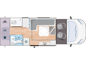 - Zubehör Paket (Markise, Solarmodul, Fliegengitter, Innenjalousie Fahrerhaus, Zusatzbett Einzelbetten, Einbaukit für 2. Batterie (kann die Anzahl der zugelassenen Sitzplätze verringern))