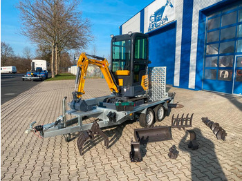 Im Angebot enhalten: Minibagger, 2-Achs Tieflader/Anhänger und kleines Zubehörpaket!